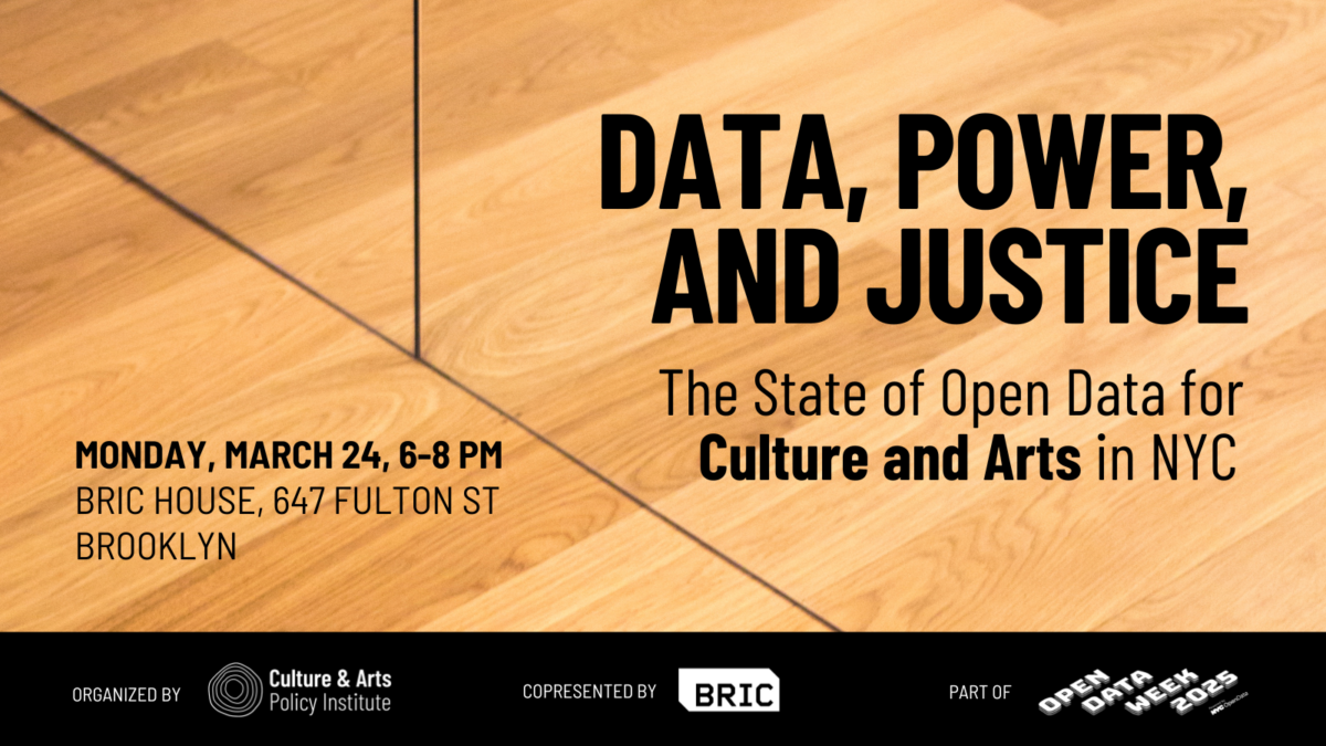 RSVP: https://www.eventbrite.com/e/data-power-and-justice-the-state-of-open-data-for-culture-arts-in-nyc-tickets-1277978611429